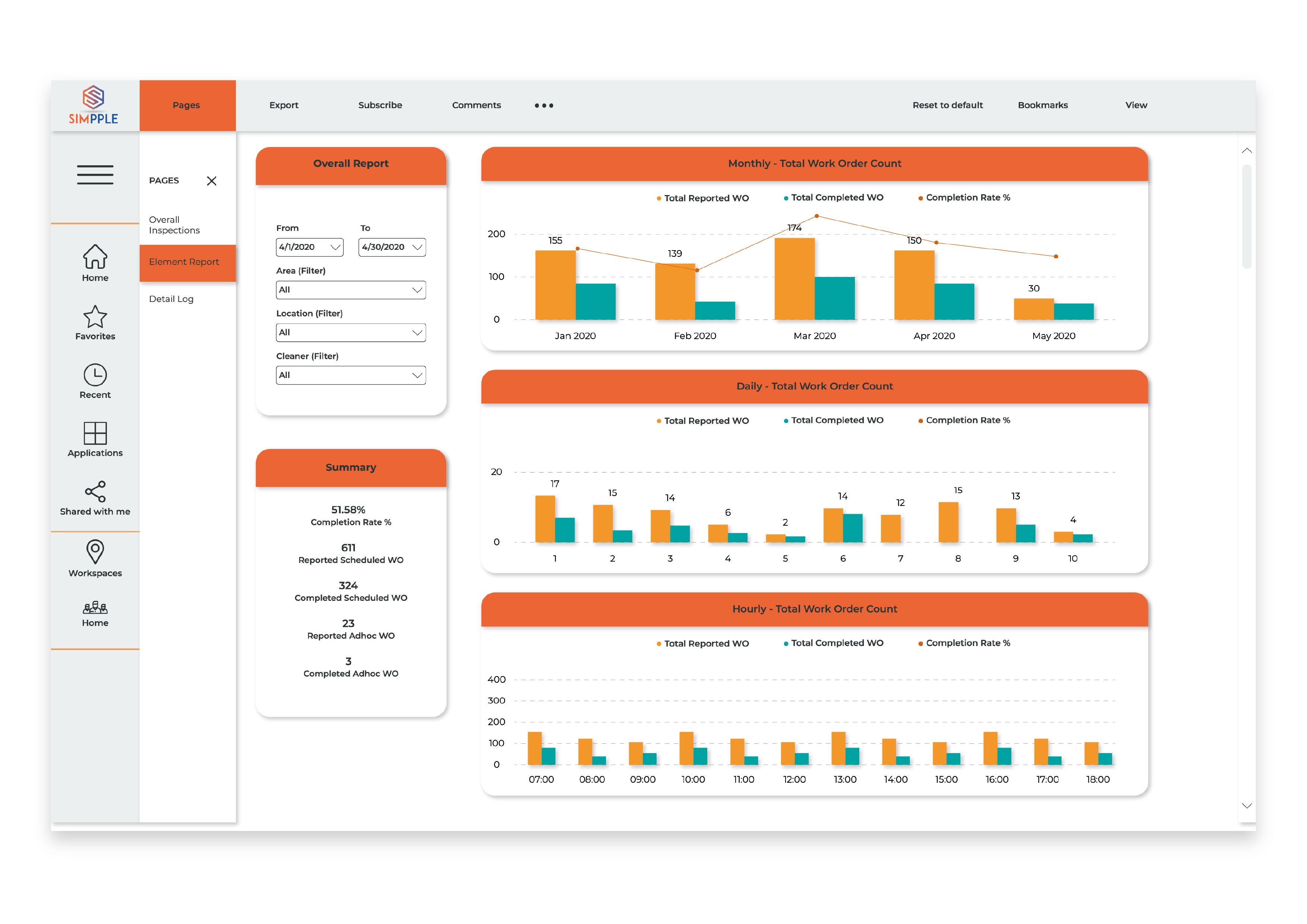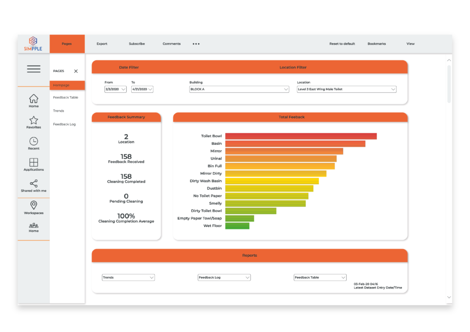 Simpple presents data in an advanced dashboard that provides detailed data and analysis from feedback systems and IoT sensors to help managers make better businesses decisions for the company. Managers can gain real-time updates on the environment of the location and status of staff and tasks all on one dashboard for an easy overview.